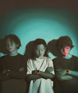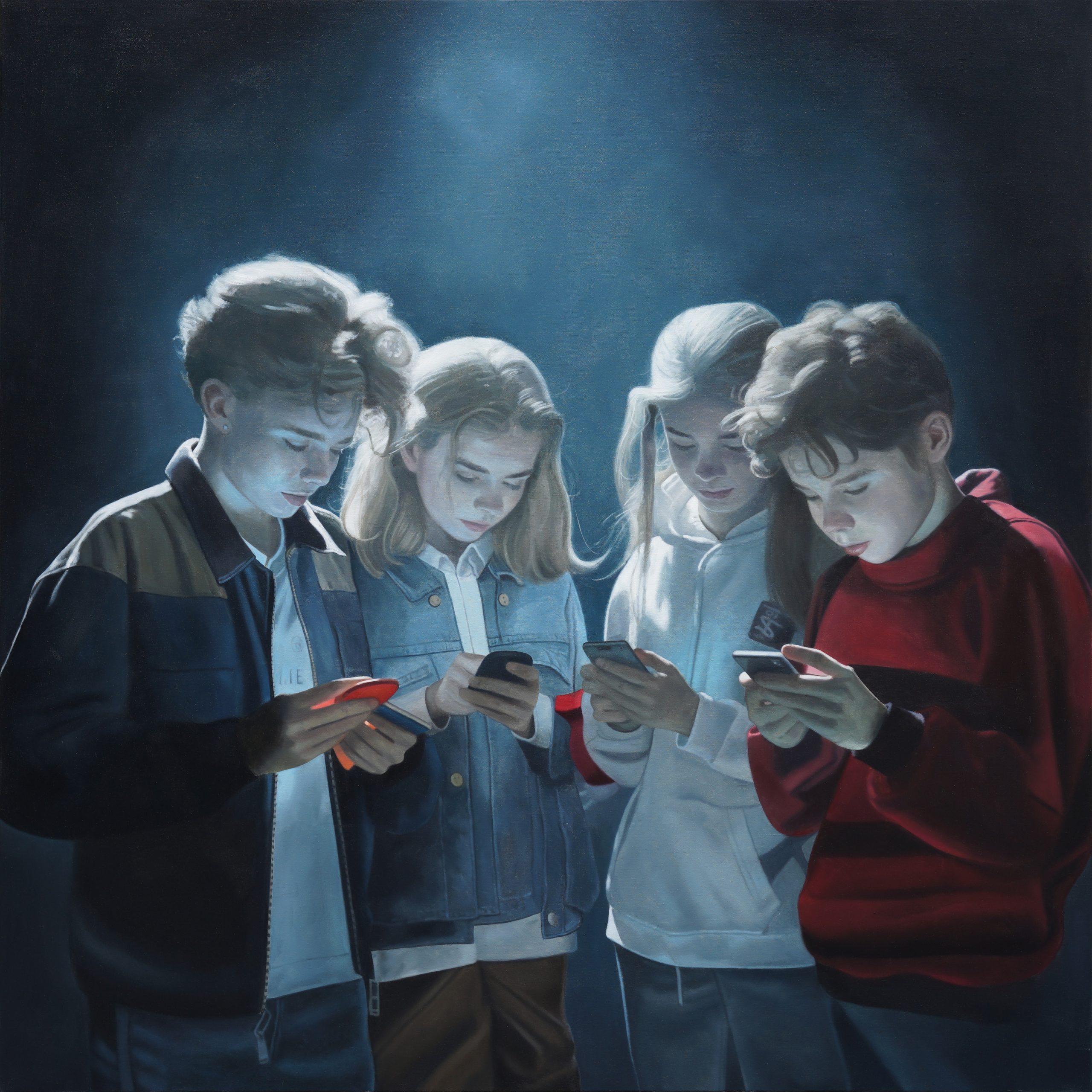 u izrazito sugestivnoj kompoziciji otvara se misao da za stvaranje zajedništva više nije potrebno drugo ljudsko biće, nego tek zaslon koji svatko nosi