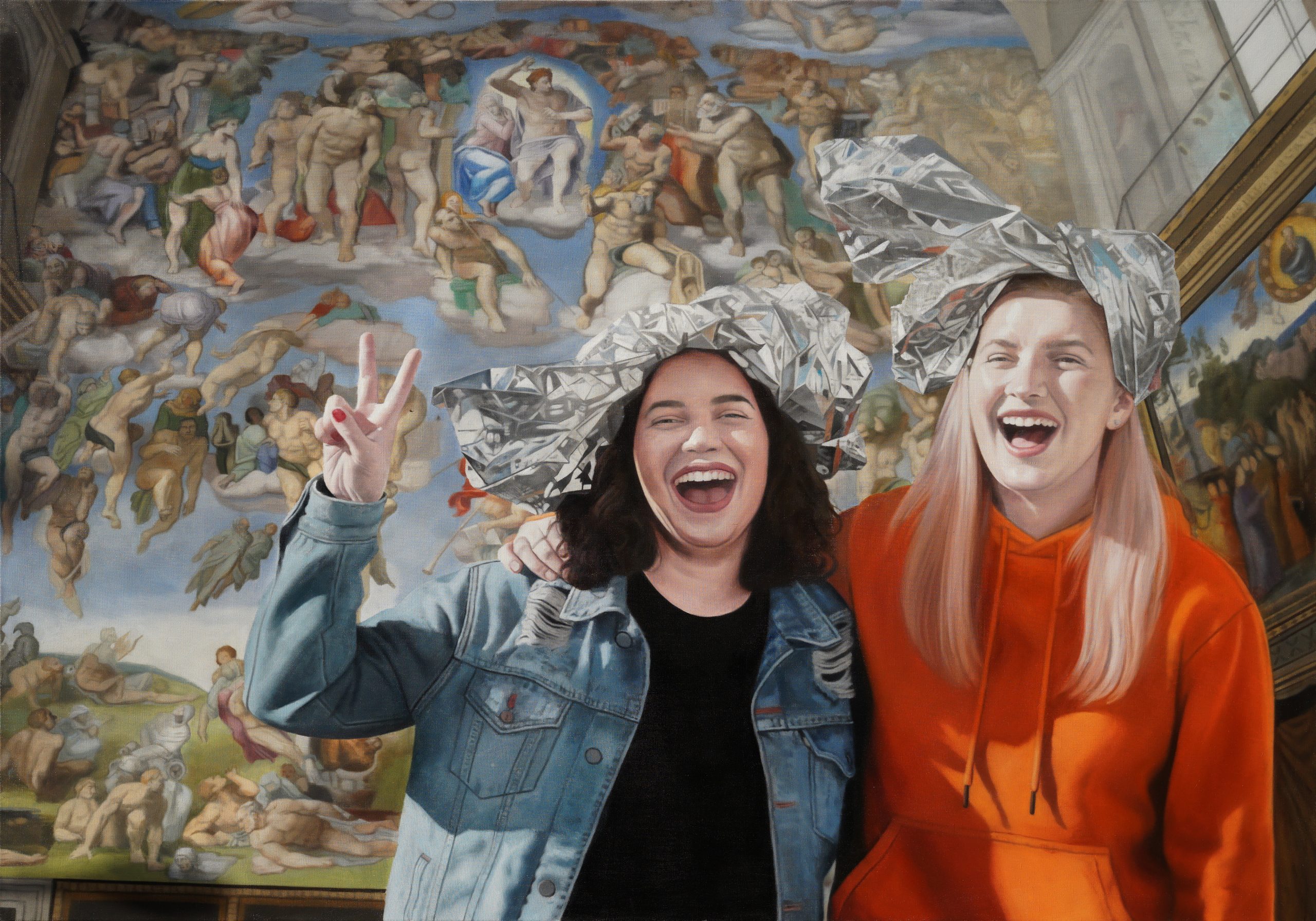 U ciklusu Spektakl, fokus na pogled se dodatno zaoštrava. Turisti usmjereni prema ekranu, a ne prema djelu, otkrivaju transformaciju pogleda u tehničku radnju. Povijesna slika u pozadini, Posljednji sud, gubi poziciju čvrstog referenta i postaje jedan motiv među mnogima nešto što sudjeluje u opticaju vizualnih funkcija. Nadalje, Šandrkov slikarski kadar ne prikazuje Vatikanski muzej kao prostor kontemplacije, nego kao mjesto u kojem se slike preklapaju, preuzimaju i multipliciraju, pri čemu granica između originala i derivata postaje posve irelevantna.